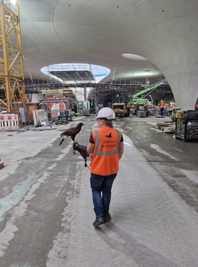 Die Befliegung der betroffenen Örtlichkeiten mit natürlichen Feinden der Tauben durch Greifvögel sorgt in der Regel für ein nahezu vollständiges Abwandern der anwesenden Taubenpopulation. Diese vollständig natürliche und für die Tiere ungefährliche Art der ökologischen Verdrängung ist in ihrem Erfolg abhängig von den Intervallen der Durchführung.